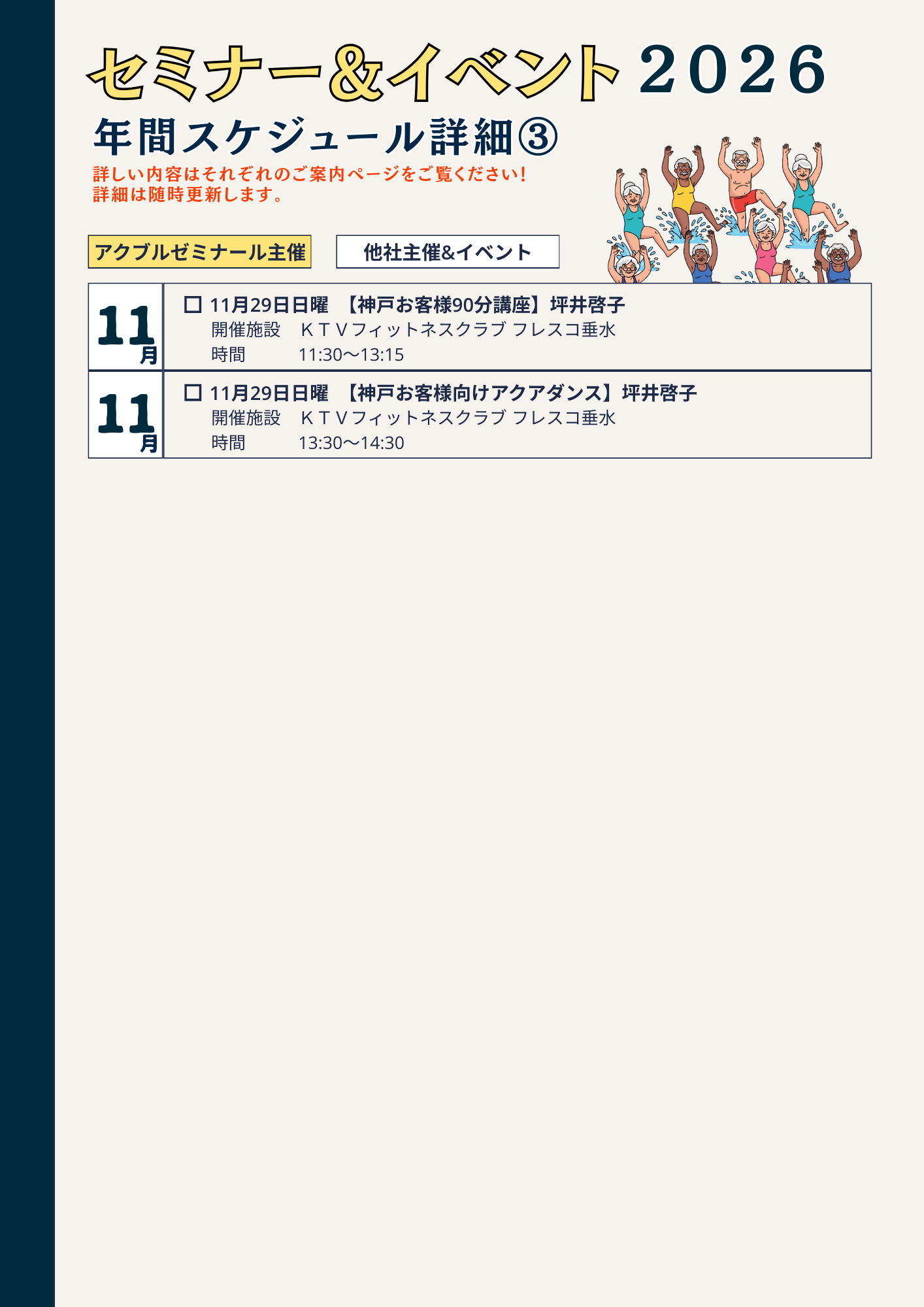 2026セミナー&イベント詳細スケジュール2026年、アクアブルーオヴティが開催するセミナー&イベントの全てのスケジュールは、こちらで公開していきます‼️スケジュールは随時更新していきますので、こまめにチェ...