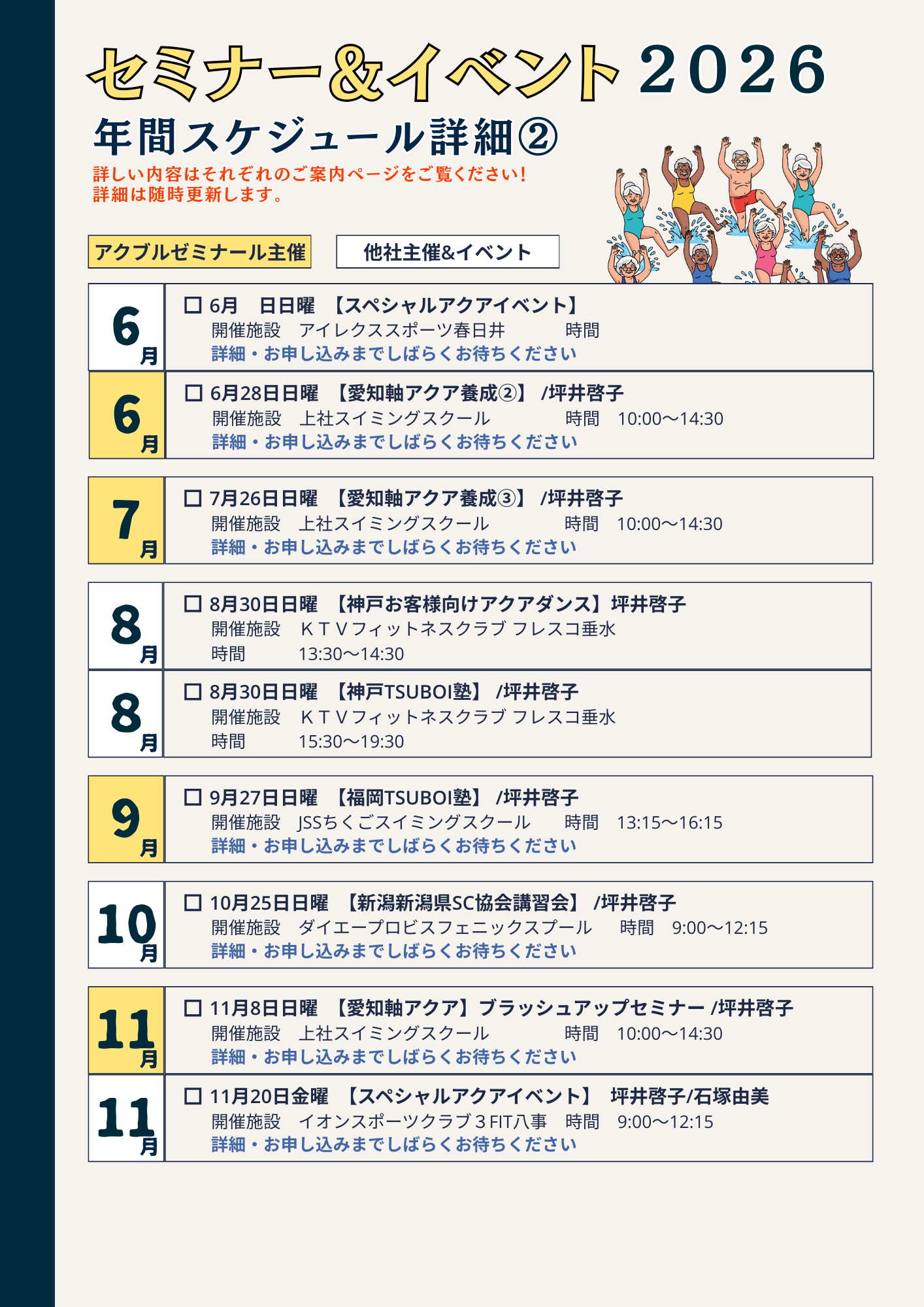 2026セミナー&イベント詳細スケジュール2026年、アクアブルーオヴティが開催するセミナー&イベントの全てのスケジュールは、こちらで公開していきます‼️スケジュールは随時更新していきますので、こまめにチェ...