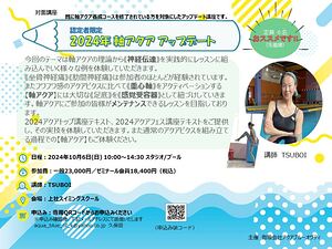2025年 軸アクア養成コースのお知らせ2025年5月開講 全3回コース【軸アクア】は坪井啓子考案のプログラムとして2018年からスタートさせ、養成コースとアップデートコースを一年に一回ずつ展開し続けています。人間が身...